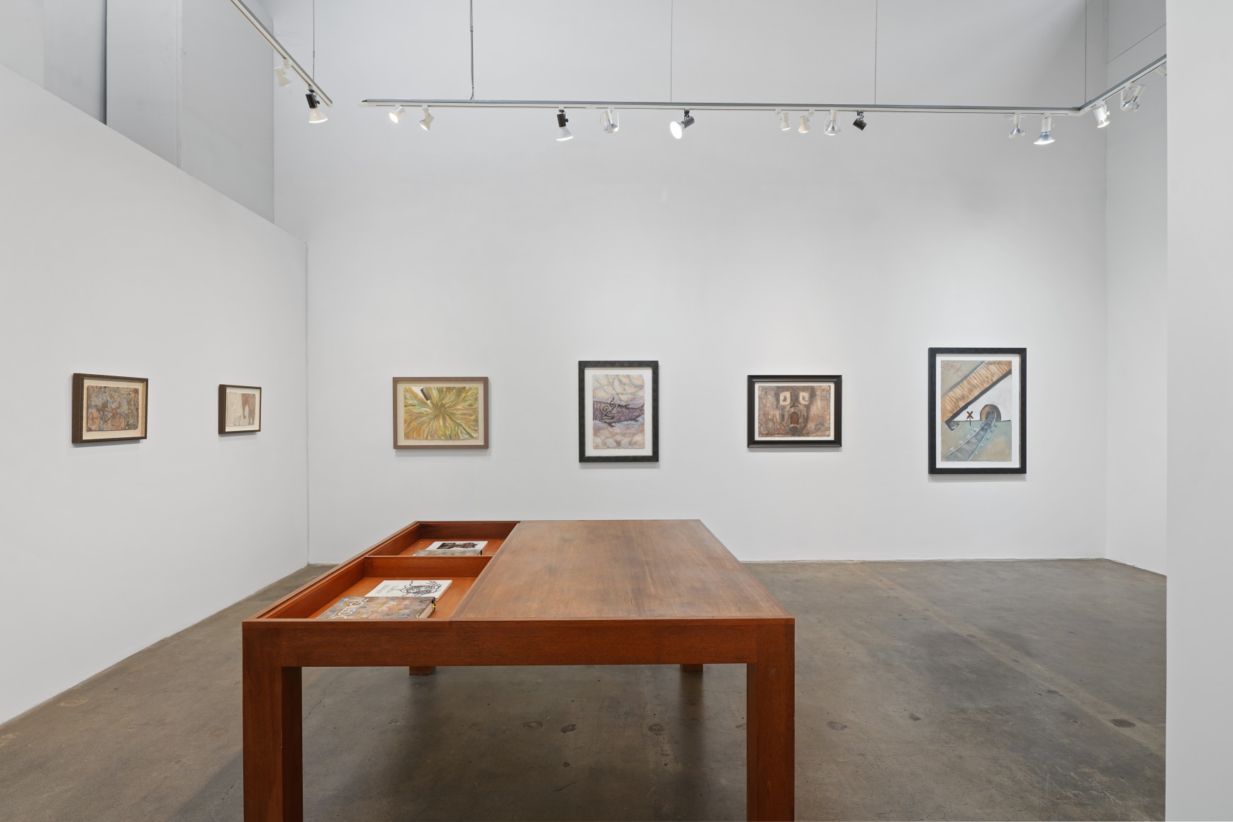 The Last Mayan Train is a multi-faceted exhibition in which Toledo combines themes of activism, mythology, and historical allegory. Among the featured works is a mixed-media painting of two fish surrounded by fishing nets (Untitled, 2019). The decorative beauty of the nets is counterbalanced by the painting’s subject: overfishing the world’s oceans. Another work features a giant octopus that rises above the ocean’s waves and ensnares a slave ship in its tentacles (Pulpo y barco de esclavos, 2019). Here, Toledo weds his animal iconography to mythology (the sea monster) and history (the slave trade). The exhibition's title piece, Vias del tren Maya, 2019 is painted from the point of view of someone riding a train, watching as the train’s tracks disappear into a tunnel that runs directly through the center of an ancient pyramid. Vias del tren Maya is inspired by the controversial project to build a tourist train to Mexico’s pre-Hispanic architectural sites.